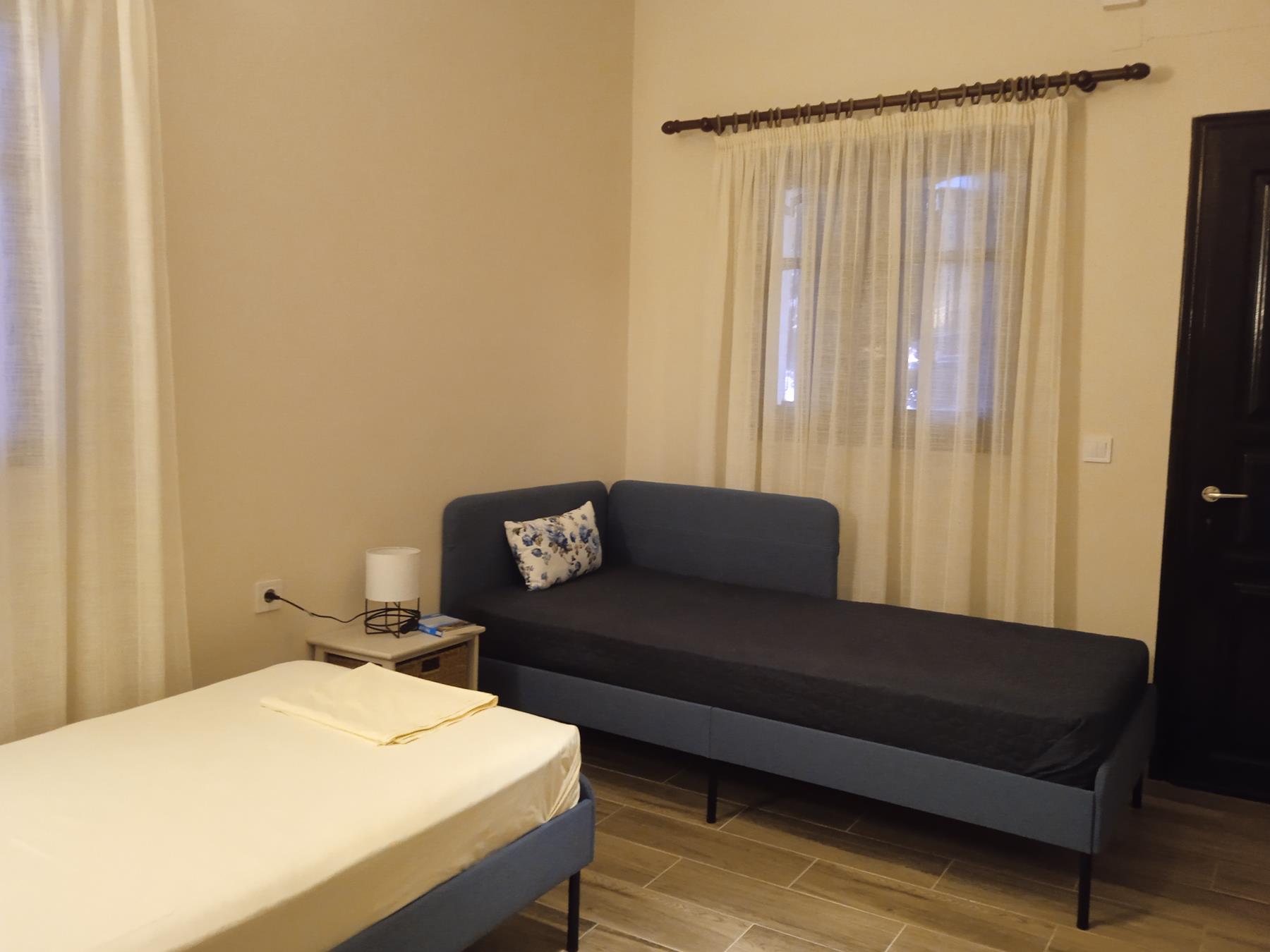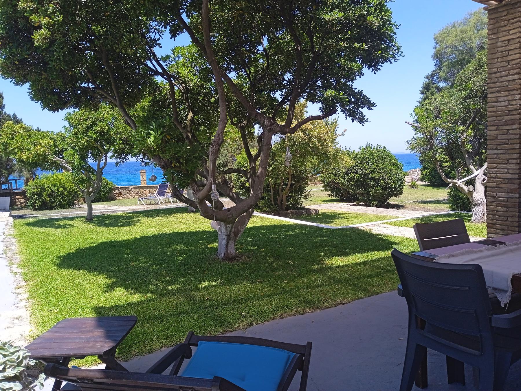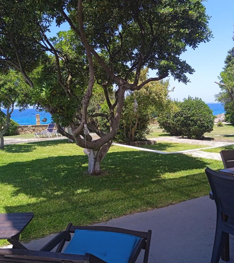 Rooms: A separate Master Bedroom, simple kitchen, bathroom, a bedroom with single beds and veranda with pergolas and sea view and garden.