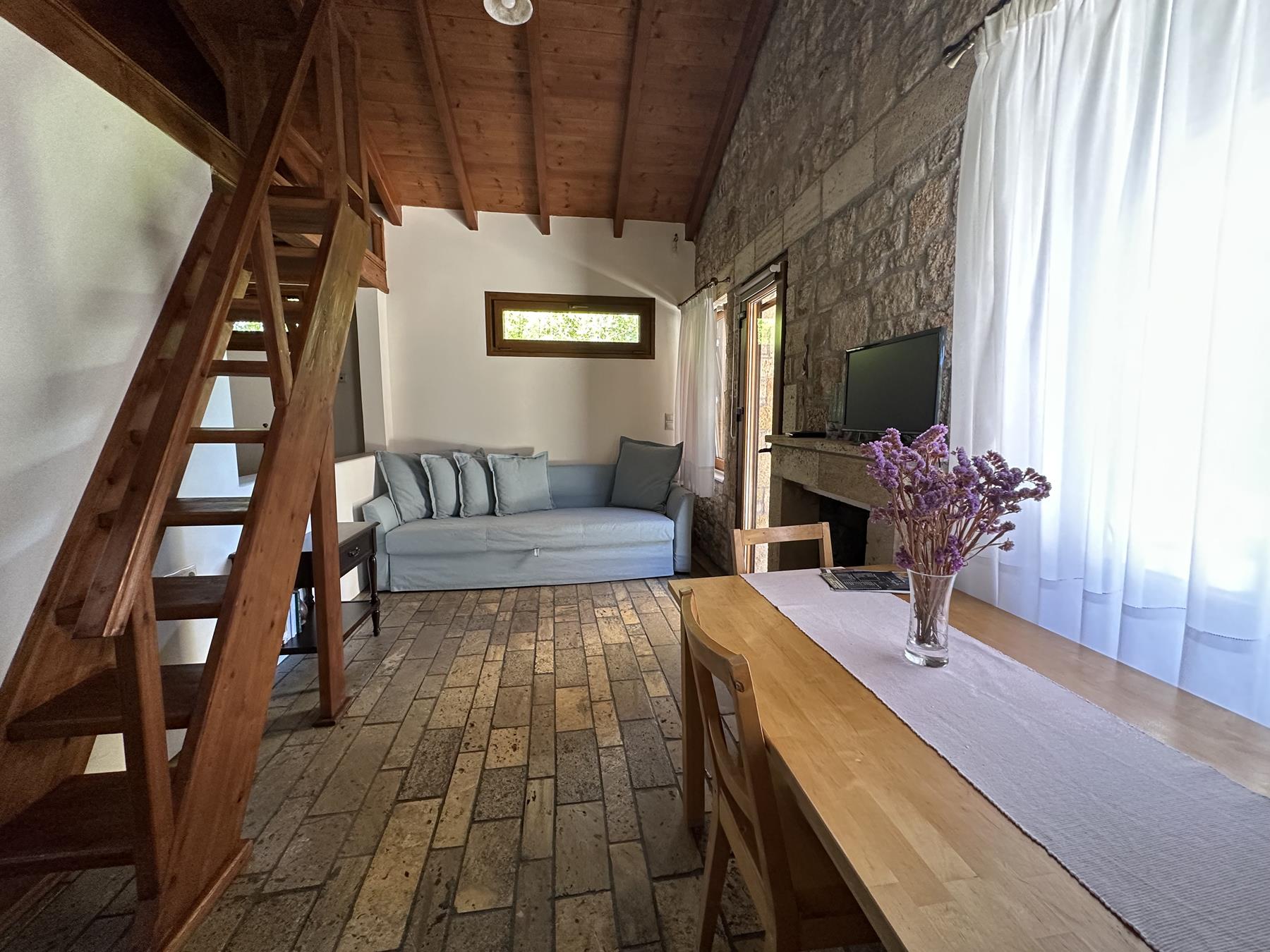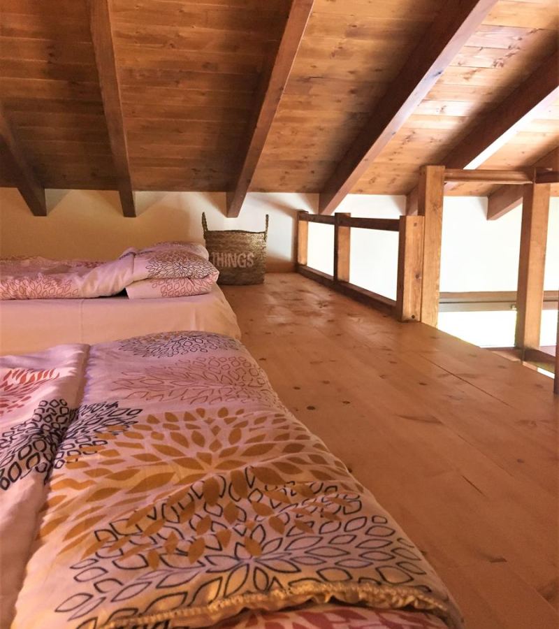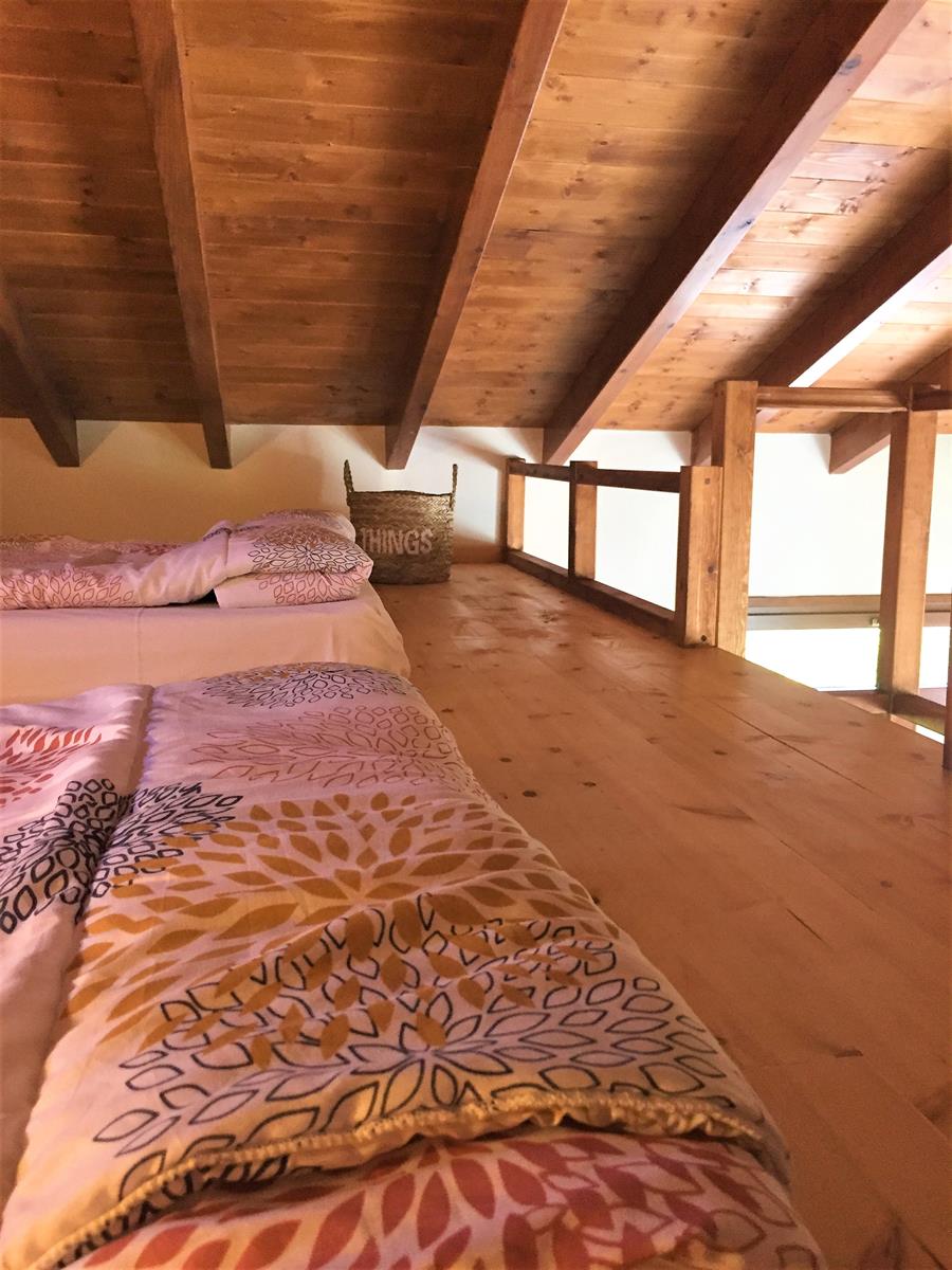 Beds: 1 double bed +1 sofa bed + 2 single mattresses in the attic